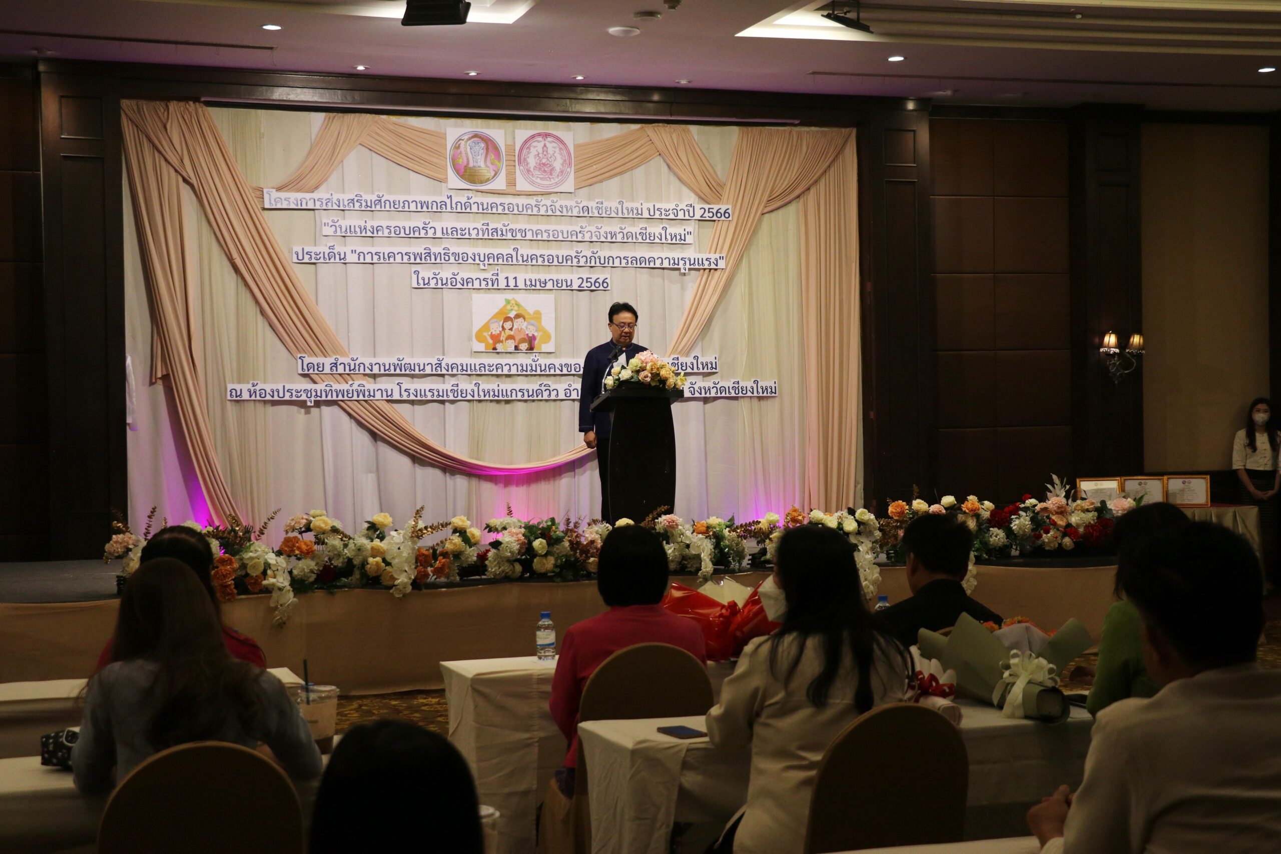 วันนี้ (11 เม.ย. 66) ที่ โรงแรมเชียงใหม่แกรนด์วิว อำเภอเมืองเชียงใหม่ จังหวัดเชียงใหม่ นายนิรัตน์ พงษ์สิทธิถาวร ผู้ว่าราชการจังหวัดเชียงใหม่ มอบหมายให้ นายศักดิ์ชัย คุณานุวัฒน์ชัยเดช รองผู้ว่าราชการจังหวัดเชียงใหม่ เป็นประธานเปิดโครงการส่งเสริมศักยภาพกลไกด้านครอบครัวจังหวัดเชียงใหม่ ประจำปี 2566 “วันแห่งครอบครัว และเวทีสมัชชาครอบครัวจังหวัดเชียงใหม่” ประเด็น “การเคารพสิทธิของบุคคลในครอบครัวกับการลดความรุนแรง” ซึ่งสำนักงานพัฒนาสังคมและความมั่นคงขอมนุษย์จังหวัดเชียงใหม่จัดขึ้นเพื่อเปิดเวทีระดมความคิดเห็นและแลกเปลี่ยนเรียนรู้ในประเด็นที่เกี่ยวข้องกับครอบครัว ค้นหาปัญหา และแนวทางการแก้ไข รวมถึงกระตุ้นให้ทุกภาคส่วนในสังคมตระหนักถึงความสำคัญของครอบครัว และการจัดการความรุนแรงในครอบครัว พร้อมกันนี้ได้มีการมอบโล่และประกาศเกียรติคุณครอบครัวร่มเย็น จำนวน 2 ครอบครัว และบุคคลดีเด่นด้านการพัฒนาครอบครัว จำนวน 3 ราย เนื่องในวันแห่งครอบครัว อีกด้วย