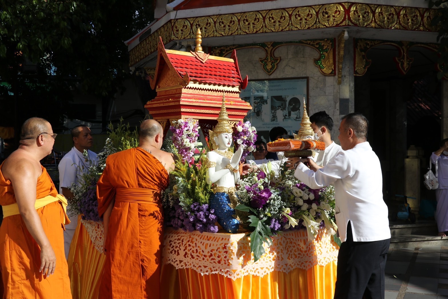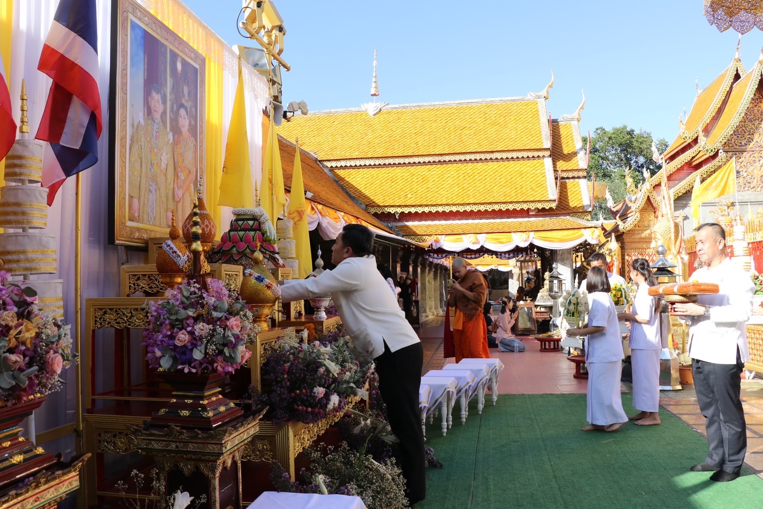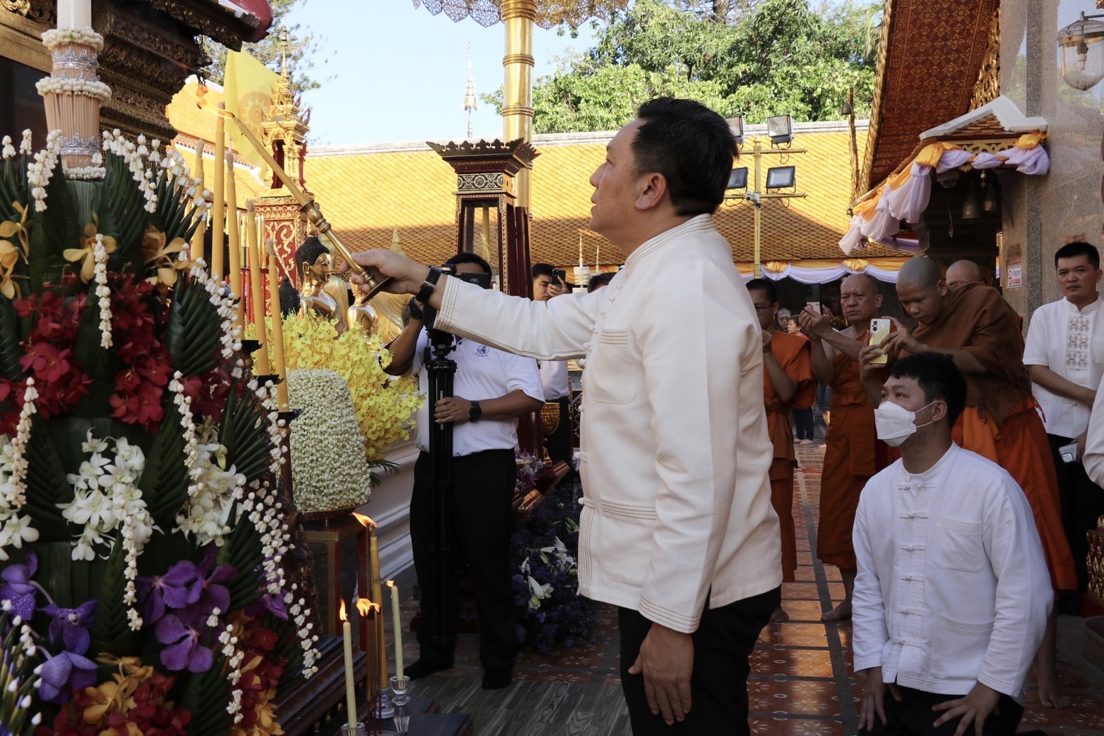 ผู้ว่าราชการจังหวัดเชียงใหม่ นำพุทธศาสนิกชน ร่วมพิธีเจริญพระพุทธมนต์สมโภชพระบรมธาตุและน้ำสรงพระราชทาน เตรียมนำไปสรงพระบรมธาตุดอยสุเทพ ในวันวิสาขบูชา