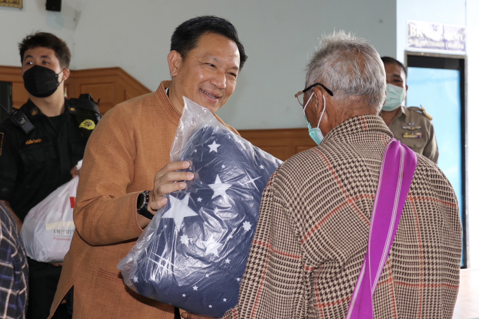 ในการนี้ ได้มอบทุนการศึกษาของกองทุนพัฒนาชนบทในพระราชูปถัมภ์ สมเด็จพระเทพรัตนราชสุดาฯ สยามบรมราชกุมารี จำนวน 10 ทุน และมอบเงินอุดหนุนสงเคราะห์และถุงยังชีพให้แก่เด็กนักเรียน อีกจำนวน 50 ทุน นอกจากนี้ ยังได้มอบพันธุ์ปลา จำนวน 30,000 ตัว สิ่งของเครื่องอุปโภค-บริโภค จำนวน 200 ชุด และผ้าห่ม อีกจำนวน 100 ชุด ให้แก่ประชาชนในพื้นที่