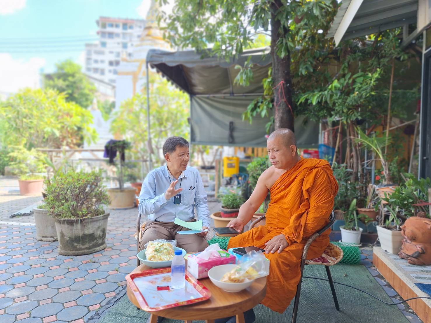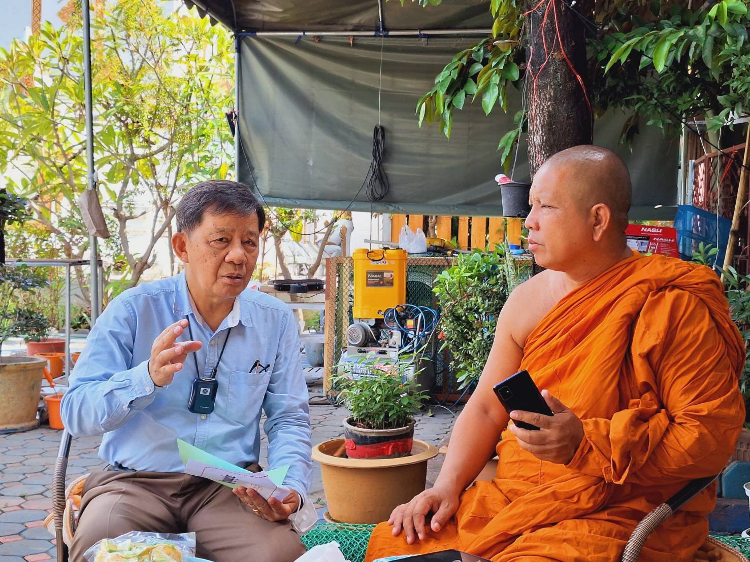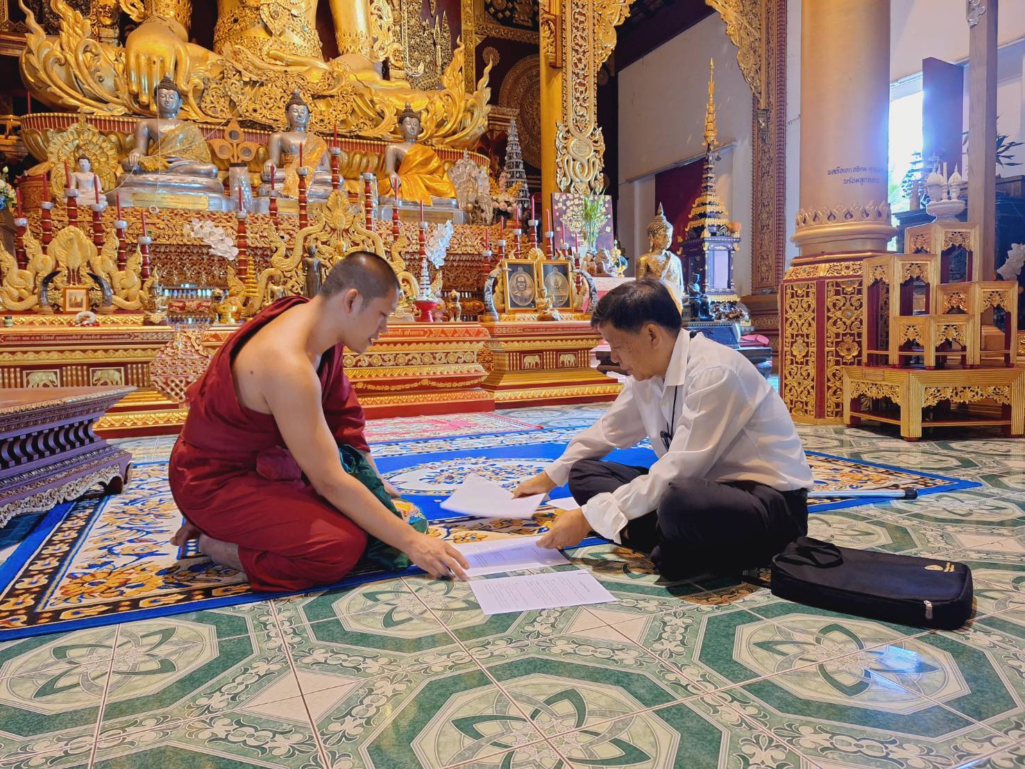 ในส่วนของภาษาไต และภาษาบาลี นั้น คณะจัดทำได้รับความอนุเคราะห์การแปลจากพระหน่อคำ วัดสุวรรณาราม(บ้านป่าลาน) ต.อุโมงค์ อ.เมือง จ.ลำพูน โดยท่านเป็นพระสงฆ์ที่มีความชำนาญภาษาไต และภาษาบาลี ท่านจะเป็นพระสงฆ์ที่จะสวดมนต์เป็นภาษาไต และภาษาบาลี เพื่อสืบทอดพระพุทธศาสนาให้กับพุทธศาสนิกชนชาวไทยใหญ่