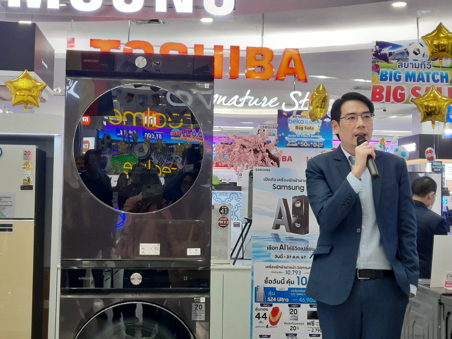 คุณเริงบุญ คล่องคำนวนการ ตำแหน่ง ผู้อำนวยการธุรกิจ เครื่องใช้ไฟฟ้าในบ้าน บริษัท ไทยซัมซุง อิเลคโทรนิคส์ จำกัด เปิดเผยว่า หลังประกาศเดินหน้าชูการใช้พลัง AI ปลดล็อกประสบการณ์และนวัตกรรมแห่งอนาคตในทุกกลุ่มธุรกิจของซัมซุง ภายใต้วิสัยทัศน์ “Lead Future of AI Innovation” เพื่อยกระดับคุณภาพชีวิตและเป็นความเป็นอยู่ของทุกคนให้ดียิ่งขึ้นในทุกมิติ พร้อมผลักดันให้คนไทยสามารถเข้าถึงเทคโนโลยี AI บนอุปกรณ์เครื่องใช้ต่าง ๆ ในชีวิตประจำวันได้มากขึ้น ล่าสุดซัมซุงเปิดตัวแคมเปญใหม่ “Let AI Gens Your Life” มุ่งยกระดับประสบการณ์การซักและอบผ้า ด้วยเทคโนโลยี AI ที่จะช่วยปฏิวัติการซักผ้ายุคใหม่ให้ว้าวกว่าเดิม พร้อมตอบโจทย์การใช้งานในช่วงหน้าฝนของคนไทย ผ่านฟังก์ชันการใช้งานสุดล้ำ ได้แก่
