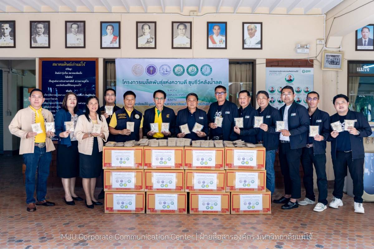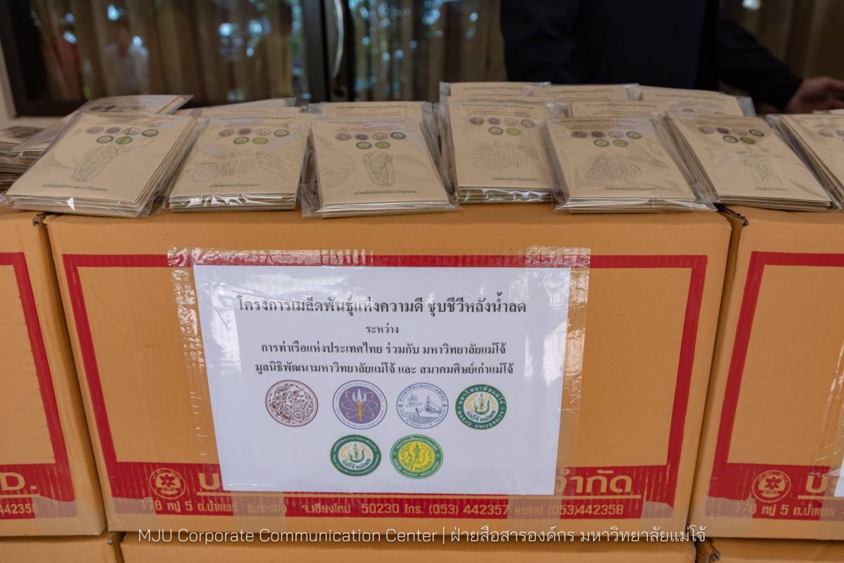 โครงการเมล็ดพันธุ์แห่งความดี ชุบชีวีหลังน้ำลด เป็นการดำเนินงานร่วมกัน ของมหาวิทยาลัยแม่โจ้ มูลนิธิพัฒนามหาวิทยาลัยแม่โจ้ และสมาคมศิษย์เก่าแม่โจ้ โดยได้รับความร่วมมือจากการท่าเรือแห่งประเทศไทย ทั้งนี้ ได้มีพิธีมอบเงินสนับสนุนโครงการเมื่อวันที่ 26 กันยายน 2567 ที่ผ่านมา โดยทางมหาวิทยาลัยได้จัดหาเมล็ดพันธุ์ผักสวนครัว ที่ปลูกง่าย ใช้ช่วงเวลาสั้น ให้ผลผลิตเร็ว ซึ่งมีทั้งเมล็ดพันธุ์ผักจากผลผลิตของมหาวิทยาลัยแม่โจ้ รวมถึงจากความร่วมมือของศิษย์เก่า และภาคีเครือข่ายที่เกี่ยวข้อง ประกอบด้วย ผักคะน้าลูกผสม พริกขี้หนู ถั่วฝักยาว ผักกาดขาวปลีลูกผสม มะเขือเปราะพวงหยกจักรพันธ์ ผักกวางตุ้งต้นลูกผสม ซึ่งจะช่วยฟื้นฟูผู้ประสบอุทกภัยให้มีความมั่นคงทางอาหารในชีวิตประจำวัน รวมถึงการก่อให้เกิดรายได้อย่างรวดเร็ว พอที่จะช่วยบรรเทาความเดือดร้อนหลังน้ำลดได้