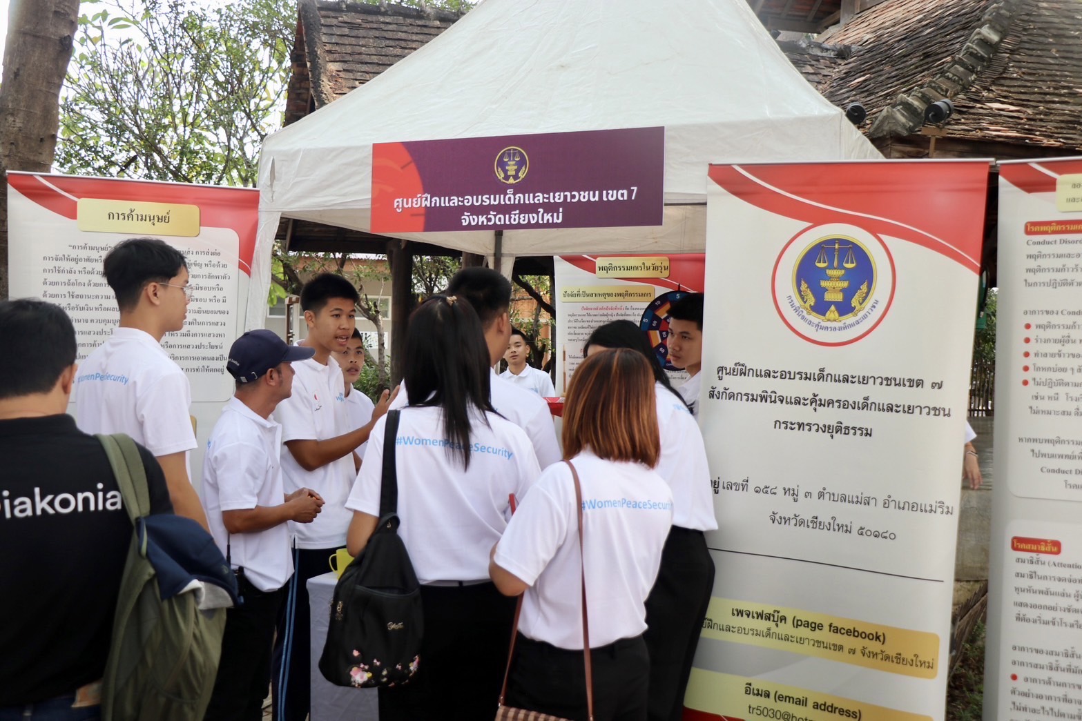 ภายในงานมีการ ปาฐกถา ในหัวข้อ การสร้างความเข้มแข็งของชุมชนเพื่อป้องกันความรุนแรงต่อสตรีและการค้ามนุษย์ โดย นางสาวกรวิไล เทพพันธ์กุลงาม ผู้แทน UN Women Thailand และการมอบ ทุนการศึกษาและประกาศนียบัตร ผู้ชนะการประกวดภาพถ่าย และภาพวาด ภายใต้หัวข้อ “Invisible Scars: บาดแผลที่มองไม่เห็นของเหยื่อบนโลกไซเบอร์” นอกจากนี้ยังมีเวทีสนทนากับผู้เชี่ยวชาญ ในประเด็น “การค้ามนุษย์และการแสวงประโยชน์ทางไซเบอร์ต่อผู้หญิงและเด็ก” การจัดบูธนิทรรศการ ซึ่งมีทั้งความรู้เกี่ยวกับภัยที่เกิดขึ้นกับผู้หญิงและเยาวชน, ภารกิจและบริการของหน่วยงานที่เกี่ยวข้อง, ช่องทางการติดต่อขอความช่วยเหลือ, เกมส์และเวิร์คชอป พร้อมรับของรางวัลพิเศษจากการร่วมกิจกรรม การแสดงดนตรีโฟล์คซอง” ด้วย