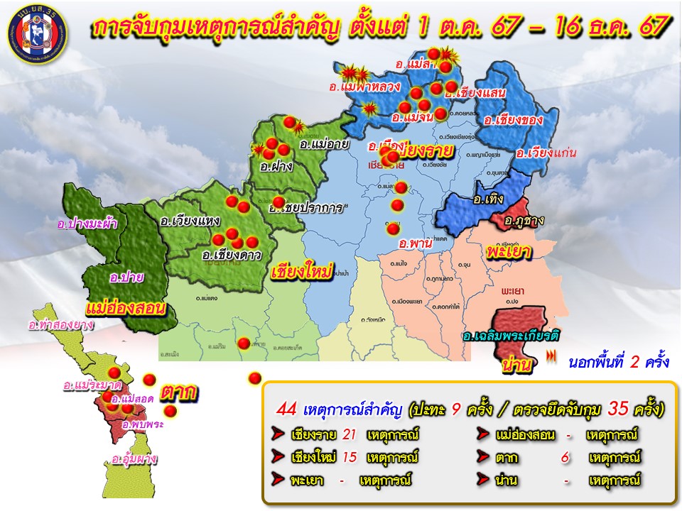 สำหรับผลการดำเนินงานด้านการสกัดกั้นและปราบปรามของหน่วยตั้งแต่ 1 ต.ค. 67 – 16 ธ.ค.67 มีเหตุการณ์สำคัญ 44 เหตุการณ์ เกิดการปะทะ 9 ครั้ง ตรวจยึด/จับกุม 35 ครั้ง ในพื้นที่จังหวัดเชียงราย เชียงใหม่และจังหวัดตาก จับกุมยาบ้า 47 ล้านเม็ด, ไอซ์ 2,357 กก., เฮโรอีน 140 กก., เคตามีน 802.86 กก.ผู้ต้องหา 45 คน เปรียบเทียบในห้วงเวลาเดียวกัน มียาบ้าเพิ่มขึ้น 11 ล้านเม็ด คิดเป็นร้อยละ 23.95 ไอซ์ เพิ่มขึ้น 1,593 กก.คิดเป็นร้อยละ 208.6