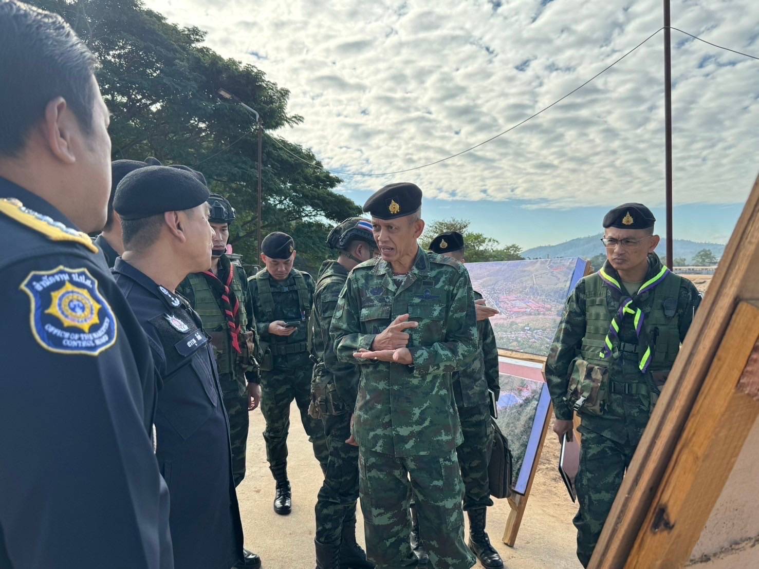 เมื่อ 17 ธ.ค. 67 เวลา 0900 พล.ท.สมจริง กอรี รองผู้บัญชาการหน่วยบัญชาการสกัดกั้นและปราบปรามยาเสพติด สารตั้งต้นและเคมีภัณฑ์ ชายแดนภาคเหนือ (รอง ผบ.นบ.ยส.35 ) เปิดเผยว่า พล.ท.กิตติพงศ์ ชื่นใจชน ผบ.นบ.ยส.35 มอบหมายให้นำคณะตรวจเยี่ยมการปฏิบัติงานของ หน่วยด้านปรามปรามยาเสพติดในพื้นที่จังหวัดตากและจังหวัดแม่ฮ่องสอน โดยเฉพาะ ร้อย.ร.421 หน่วยเฉพาะกิจราชมนู ที่ ท่าข้ามสินค้าที่ 28 บ้านช่องแคบ ต.ช่องแคบ อ.พบพระ จังหวัดตาก โดยมีนายสราวุธ ภักดี ผอ.ปปส. ภาค 6 ร่วมให้ข้อมูลสถานการณ์ยาเสพติด สารตั้งต้นและเคมีภัณฑ์ ในพื้นที่