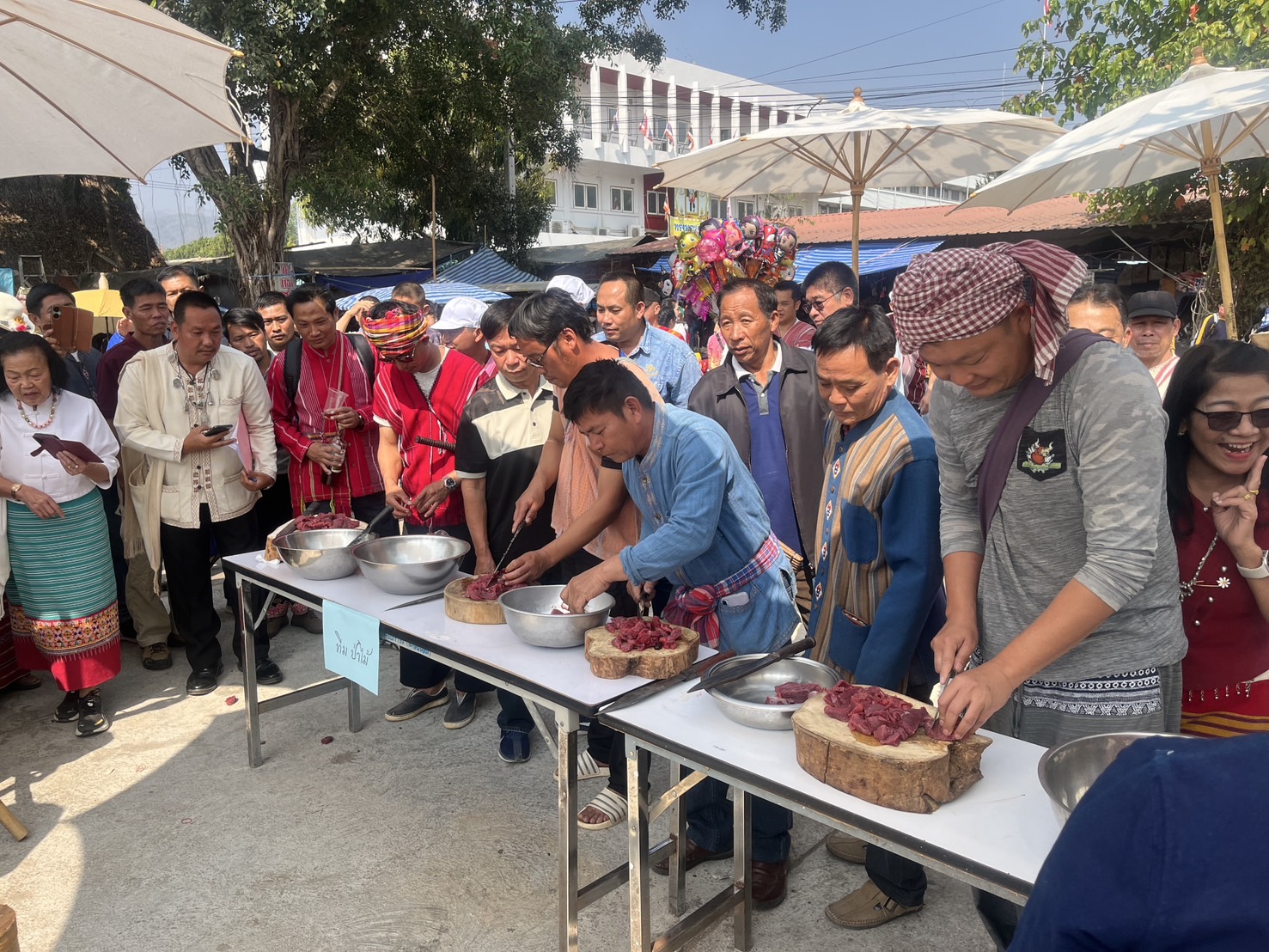 หลังจากเสร็จสิ้นพิธีการเปิดได้มีการจัดการแข่งขันลาบเมืองและแข่งขันแกงอ่อม นำโดยอ้ายจรัล ชัยวงค์ เจ้าของร้านลาบต้นยาง และนางสาวกุลญาอร เรือนเงิน หรือ เจ๊แว่นแก้ว แม่ค้าส้มตำร้านแว่นแก้วแซบเวอร์ ร้านลาบต้นยาง ต.สันผีเสื้อ อ.เมือง จ.เชียงใหม่ มาร่วมดำเนินการจัดการแข่งขันลาบเมืองและแข่งการทำอาหารพื้นเมืองแกงอ่อมดังกล่าว ที่ได้รับการสนับสนุนจากคุณสัณหจุฑา จิราธิวัฒน์ (พี่ไก่) ประธานและผู้ก่อตั้ง มูลนิธิรักษ์ดิน รักษ์น้ำ(Earth Safe Foundation) สนับสนุนเงินงบประมาณแข่งขันลาบและแกงอ่อมในงานมหกรรมผ้าซิ่นตีนจกและวัฒนธรรมชนเผ่าอำเภอแม่แจ่ม ครั้งที่ 30 ประจำปี 2568 จำนวนเงิน 20,000 บาท สร้างความสุขสนุกสนานให้ชาวบ้านเป็นอย่างยิ่ง.