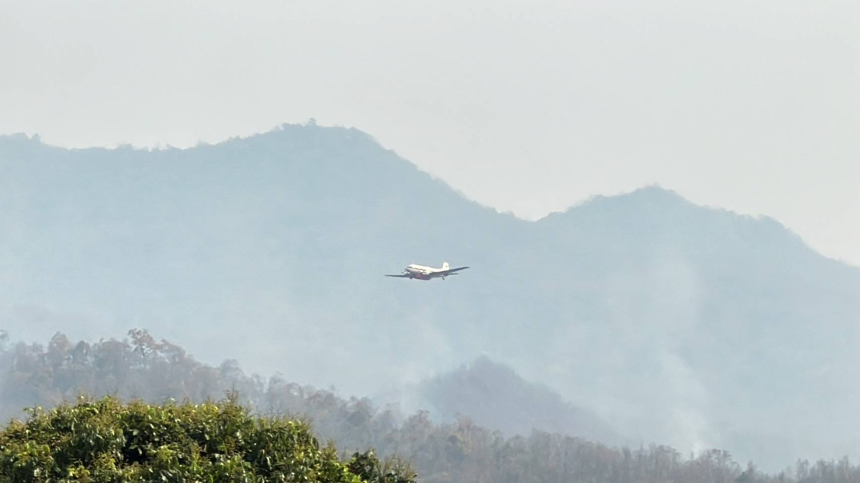 กองทัพอากาศร่วมกับกองทัพภาคที่ 3 นำอากาศยาน: BT-67 โปรยน้ำดับไฟในพื้นที่ อ.บ้านโฮ่ง จ.ลำพูน