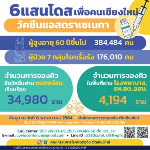 ภาคเอกชนแจงยอดความต้องการฉีดวัคซีน กว่า 1.7 แสนคน ส่วนกลุ่มผู้สูงอายุและผู้ป่วย 7 โรคเรื้อรัง มียอดจอง 49,995 ราย จากเป้าเชียงใหม่ 6.1 แสนคน